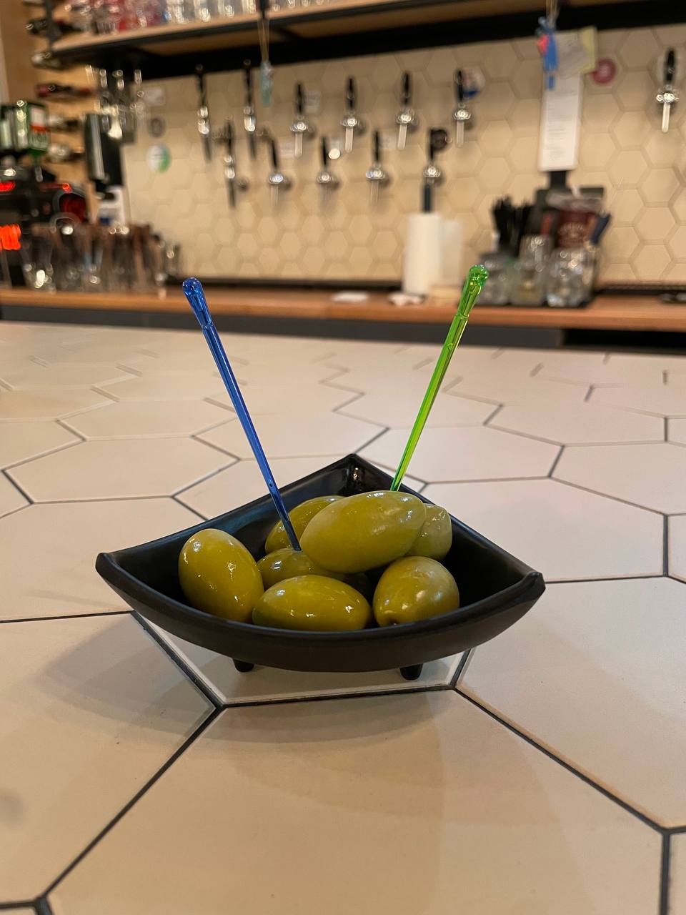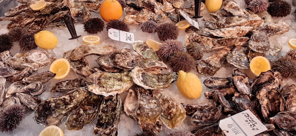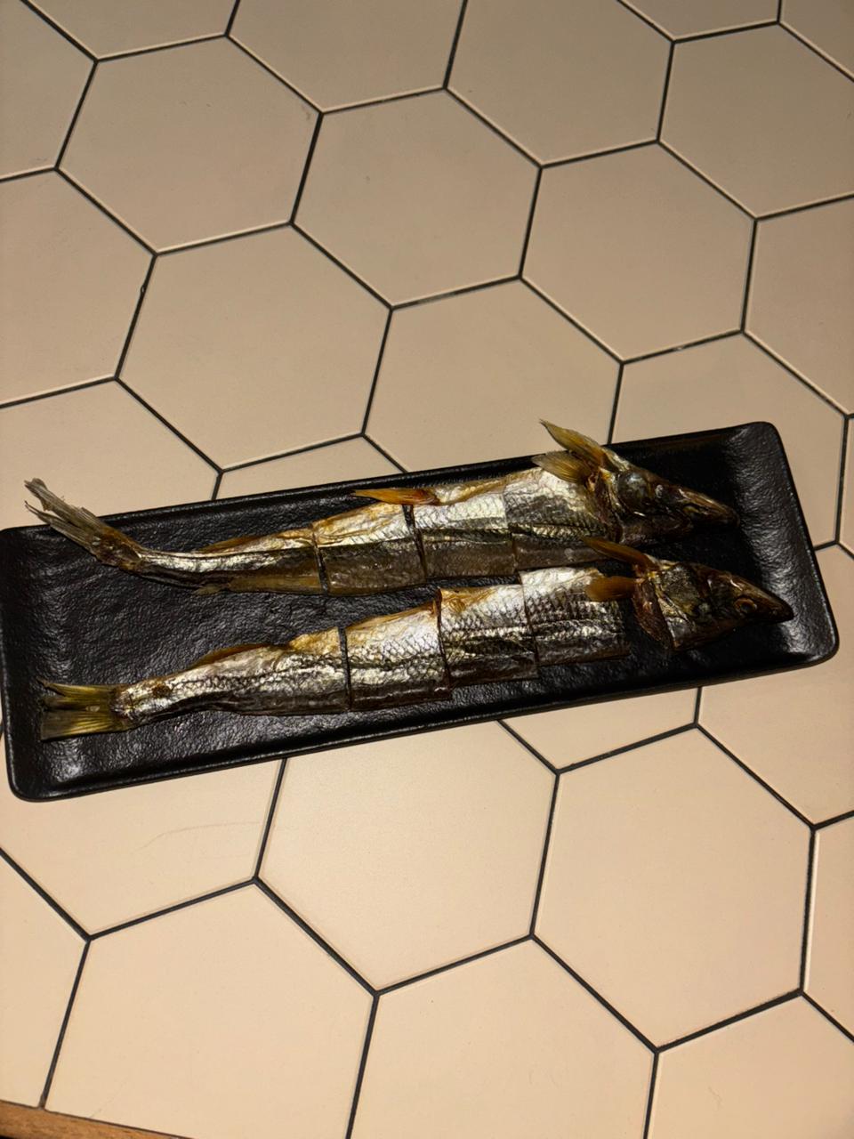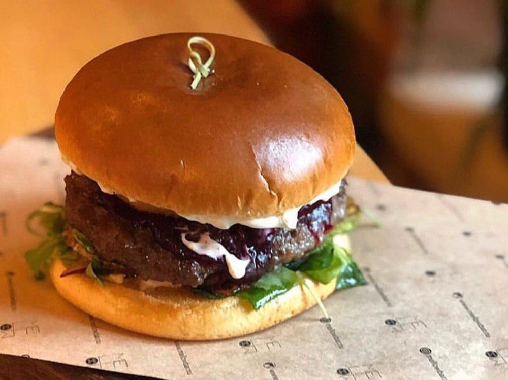 Булочка, сырно-устричный крем, маринованные огурцы, язык говяжий.
