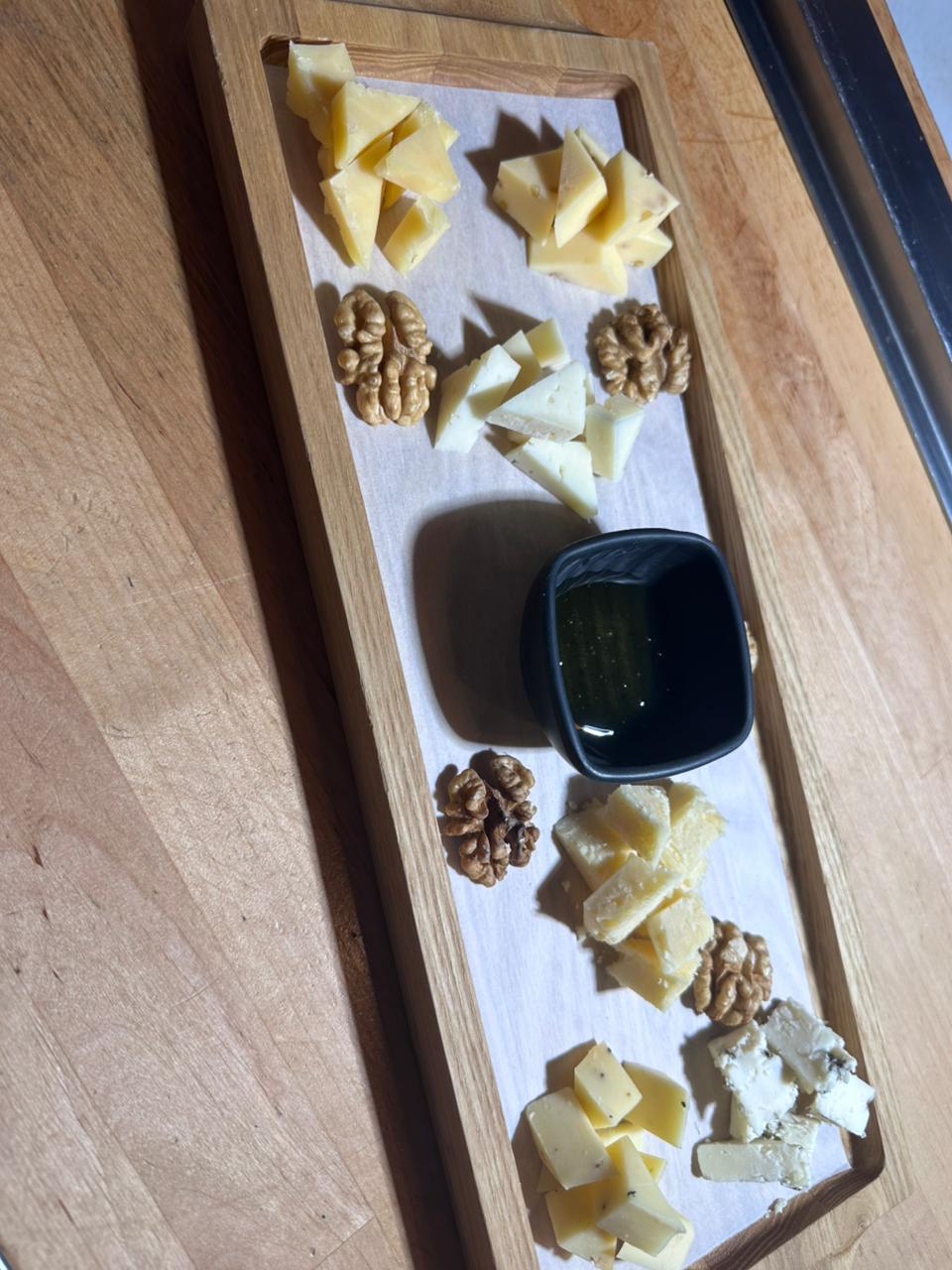 Пармеджано, дор блю, с пажитником, козий, манчего, Пеппер джек, Мёд, Грецкий орех. 160 гр.