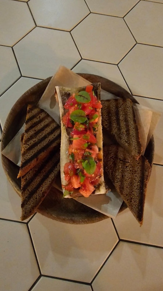 Говяжья косточка, помидор, зелень лук. 1 шт.