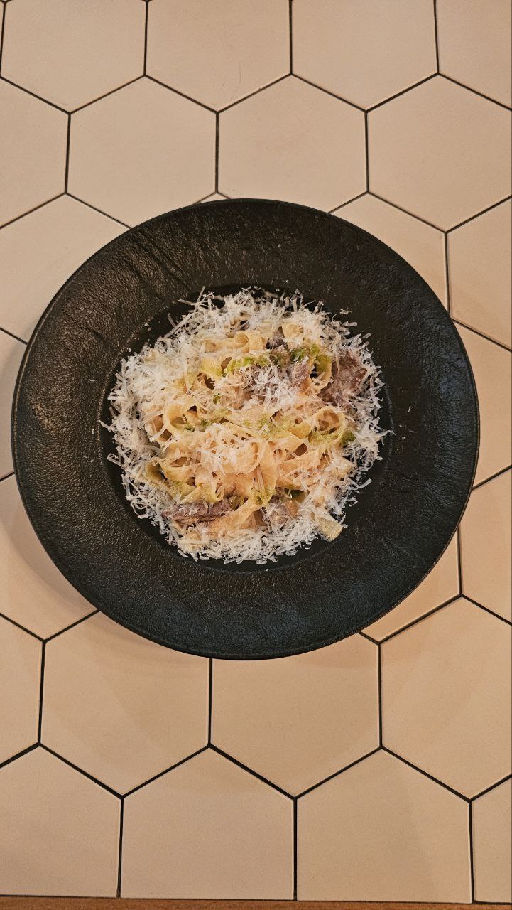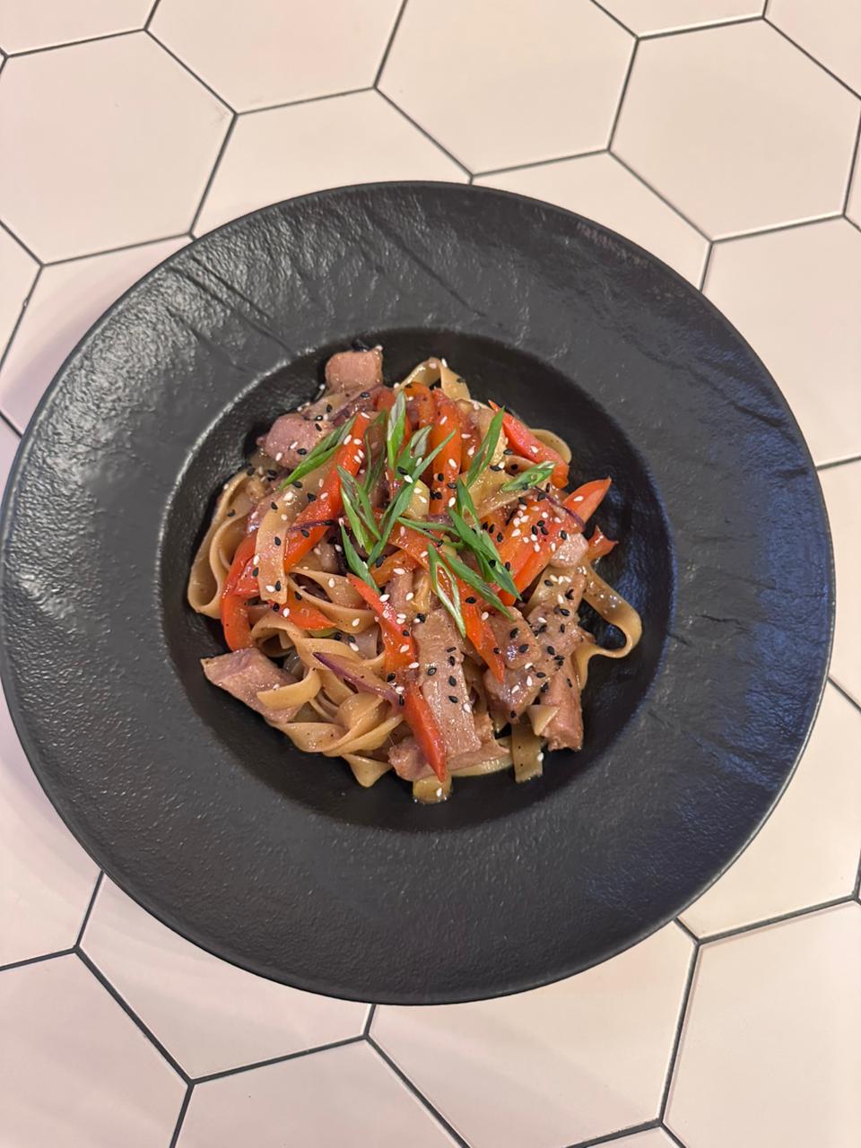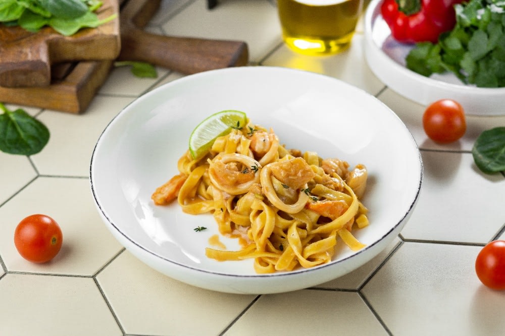 Говяжья вырезка, фетучини отварные, сливки, пармезан 230 гр.
