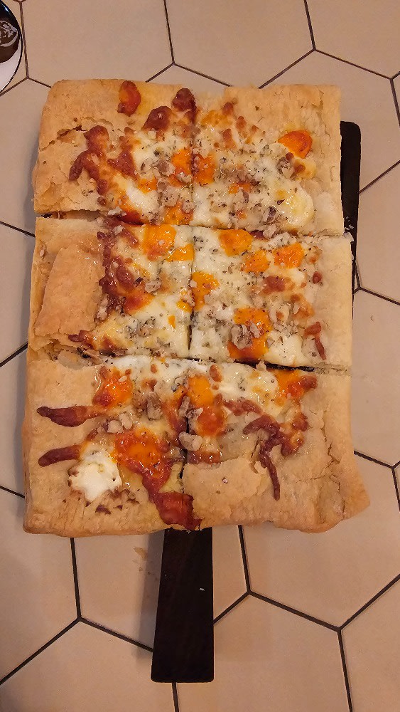 Слоеное тесто, сыр моцарелла, сыр чеддер, сыр сливочный, сыр дор блю, мёд, грецкий орех 210 гр.