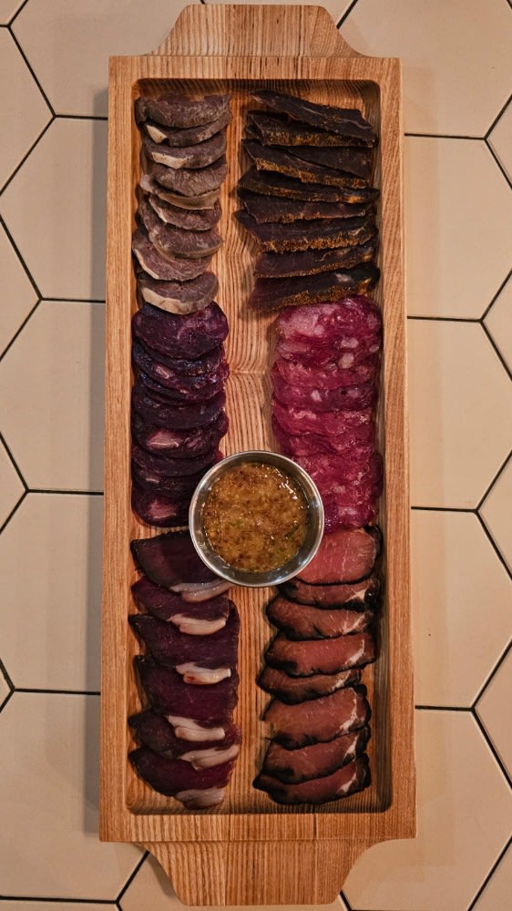 Бастурма говядина, Казылык утка, Казылык конина, Бастурма копчёная, Тутырма казы, соус нисуаз. 210 гр.