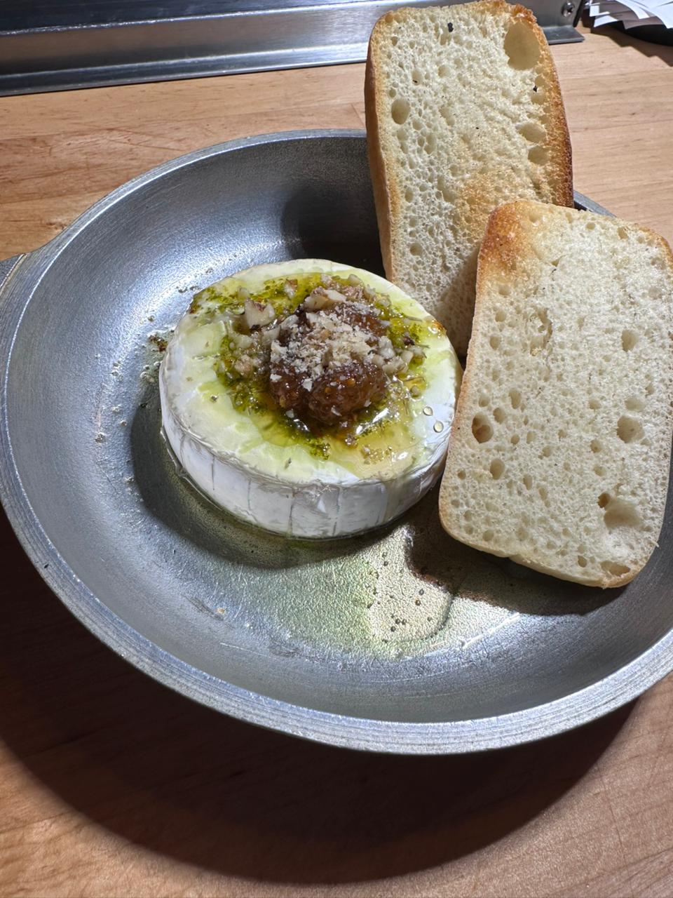 Сыр камамбер, тутовое варенье, Чесночное масло с чили, Грецкий орех, Чиабатта 250 гр.